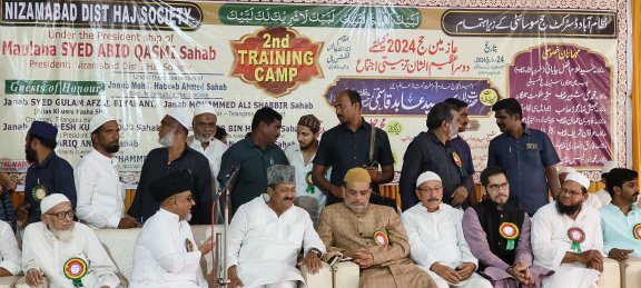 ضلع نظام آباد حج سوسائٹی کے زیر اہتمام عازمین حج کیلئے شہر میں واقع کے این این فنگشن ہال میں امیر الحجاج ممتاز عالم دین صدر ضلع حج سوسائٹی علامہ مولانا عابد قاسمی کی صدارت میں دو پہر دن بعد نماز ظہر تا 6 بجے شام عظیم الشان پیمانے پر تربیتی اجتماع منعقد ہوا