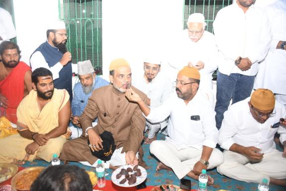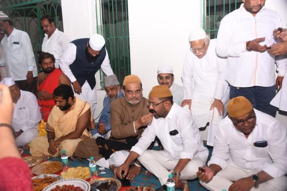 ریاستی حج کمیٹی چیئرمین و سجادہ درگاہ قاضی پیٹ مولانا سید غلام افضل بیابانی المعروف خسرو پاشاہ نے درگاہ کے احاطے میں دعوت افطار و طعام کا اہتمام کیا ۔ تلاوت قران پاک سےشرو ع ہونے والے اس پروگرام میں ہندو مذہب کے پجارویوں ، عیسائیت مذہب کے چرج فادر اور سکھ مذہب کے پیشوائوں نے شرکت کی۔
