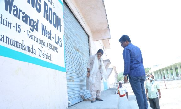 کلکٹر نے پرکال اور ورنگل ویسٹ حلقوں کے ای وی ایم کی مہریں اور اسٹرانگ رومز کے شٹروں کے تالے کا معائنہ کیا جہاں انتخابی سامان رکھا گیا تھا۔